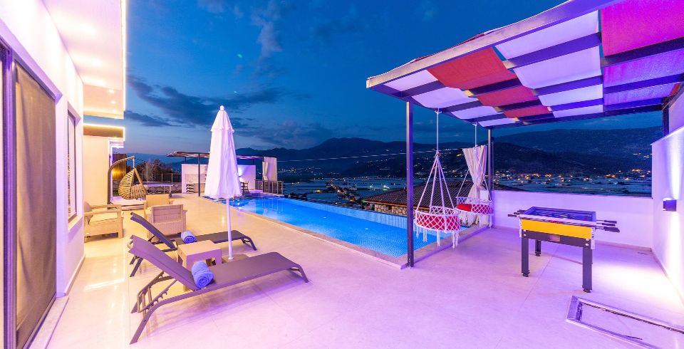 Villa Aysima, Kalkan Yeşilgöy bölgesinde 2 yatak odalı 5 kişilik villamız doğa manzarasına sahiptir. Son derece modern ve ferah bir şekilde dekore edilmiştir. Bahçe alanı, havuz terasına sahiptir. Balayı çiftleri ve çekirdek aileler için ideal bir seçenek olan villamızda jakuzi de bulunmaktadır.