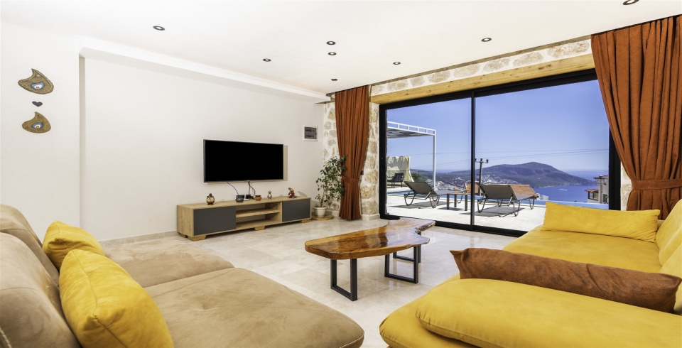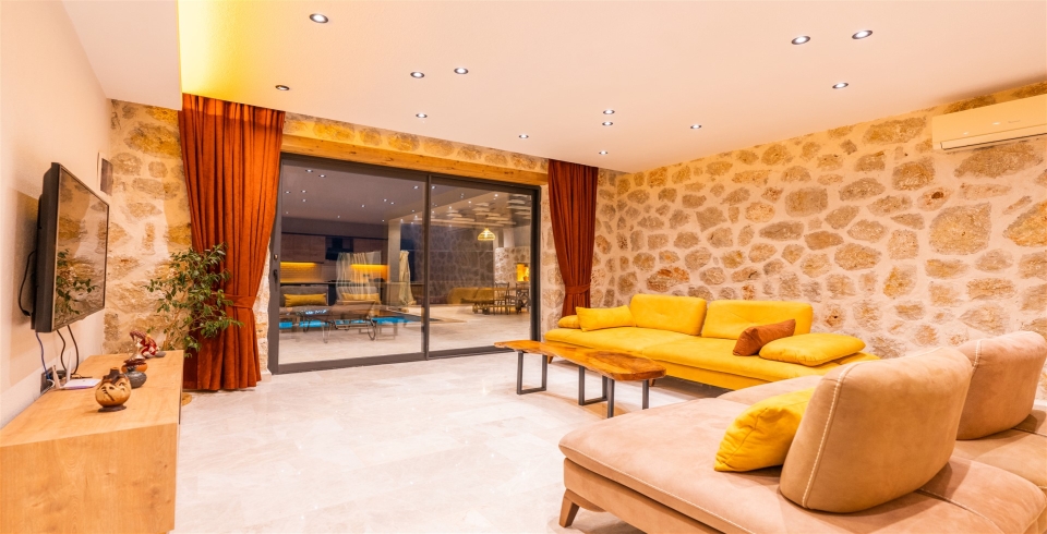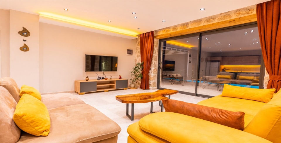 Salon : Havuz terasına direkt çıkışı olan salonumuzda televizyon, modem, oturma grubu, klima, sehpa bulunmaktadır.
