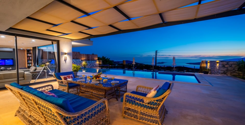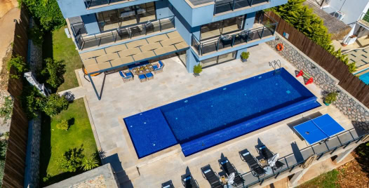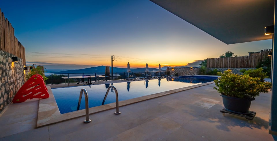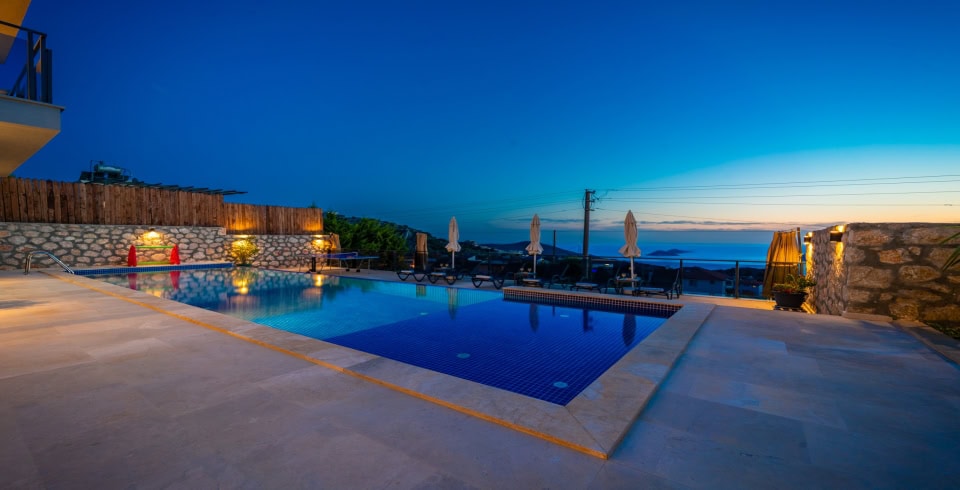 Villa Azde, Kalkan Kördere mevkiinde konumlanmakta olan deniz manzaralı kiralık villalarımız arasında yer almaktadır. Modern ve şık bir dekorasyona sahip olan villamız 3 yatak odalı 6 kişi konaklama kapasitelidir. Her bir detayın en ince ayrıntısına kadar düşünüldüğü kiralık villamızın havuz ve havuz terası korunaklı hale getirilmiştir. Muhafazakar aileler, balayı çiftleri ve geniş aileler rahatlıkla tercih edebilirler. Keyifli ve huzur dolu bir yazlık villada tatil için Villa Azde 'yi tercih edebilirsiniz.