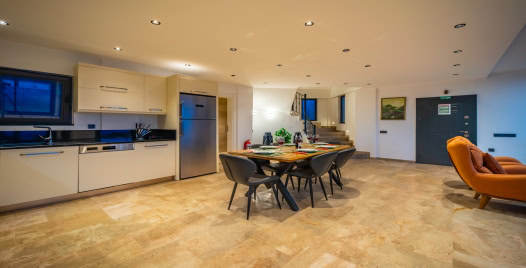 Salon : Villa salonunda konforlu oturma grubu, klima, TV, internet, uydu alıcı, yemek masası, sehpa bulunmaktadır.