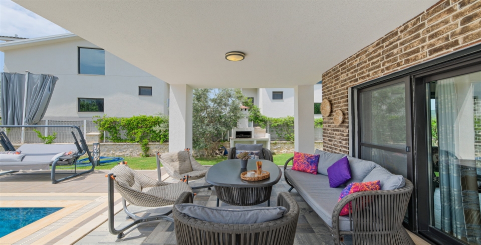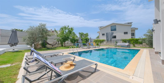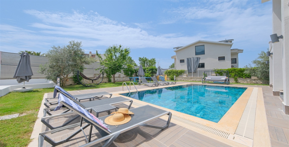 Bahçe : Özel yüzme havuzu, şezlong, şemsiye, duş, yemek masası, mangal bulunmaktadır.