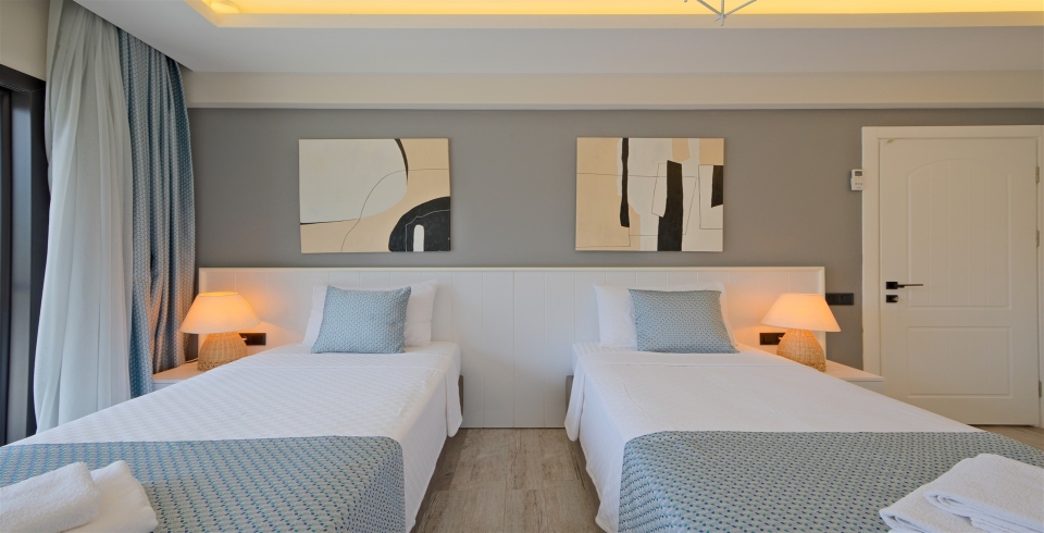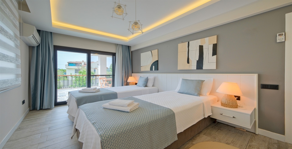 4. Yatak Odası : İki adet tek kişilik yatak, komodin, etejer, elbise dolabı, klima, banyo - tuvalet saç kurutma makinesi ve balkon çıkışı bulunmaktadır.