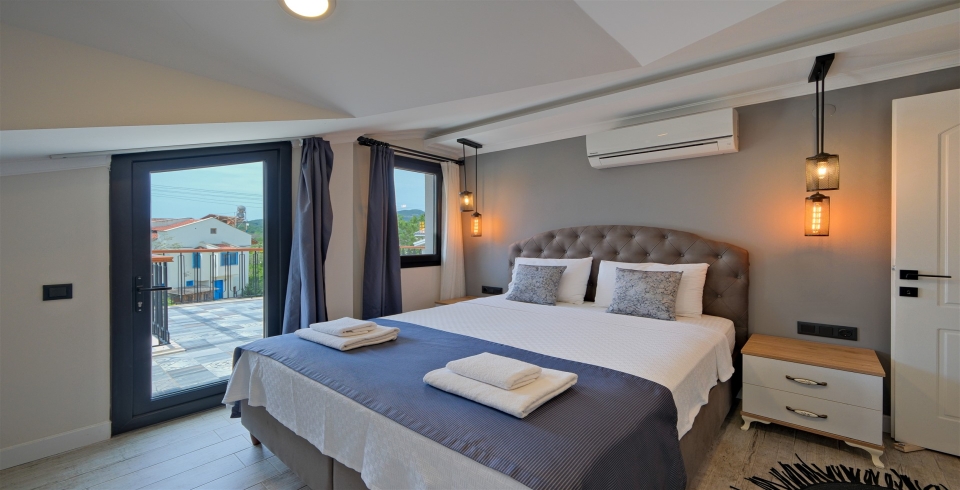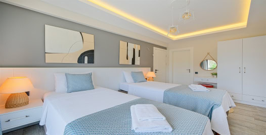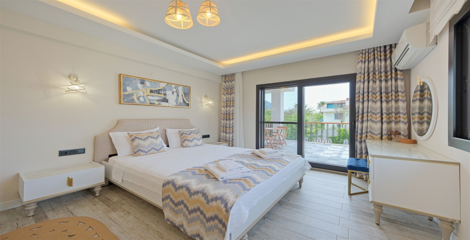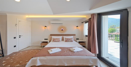 3. Yatak Odası : Çift kişilik yatak, komodin, elbise dolabı, makyaj masası, klima, banyo, tuvalet saç kurutma makinesi ve balkon çıkışı bulunmaktadır.