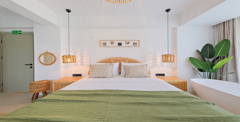 1. Yatak Odası : 1 adet Çift kişilik yatak, Klima, Komodin, Elbise Dolabı,lüks fransız küveti,banyo/WC bulunmaktadır.