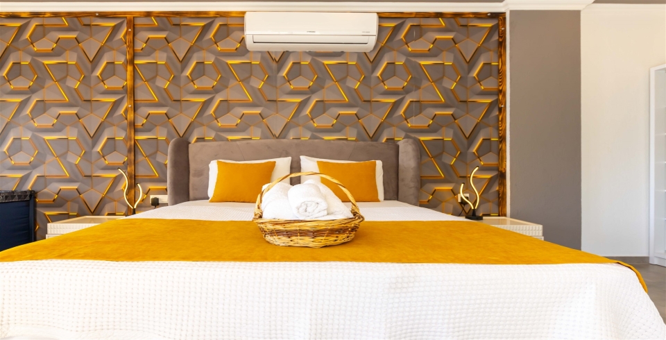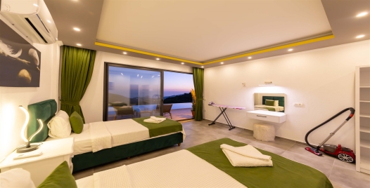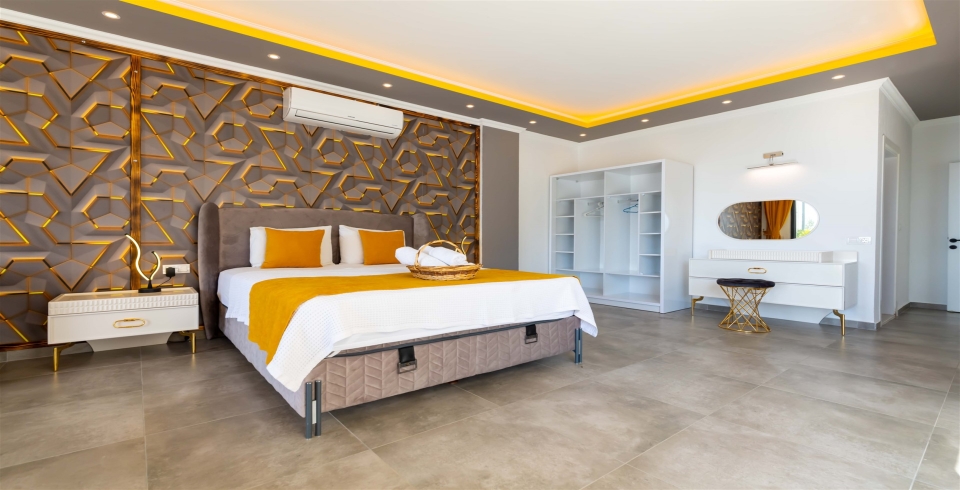 1. Yatak Odası : 1 adet Çift kişilik yatak, klima, komodin, jakuzi, makyaj masası, elbise dolabı, banyo ve lavabo bulunmaktadır.