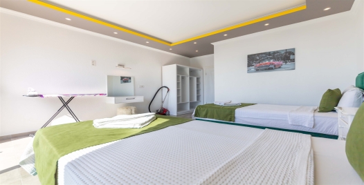 2. Yatak Odası : 2 adet tek kişilik yatak, komodin, klima, makyaj masası, elbise dolabı, banyo ve lavabo bulunmaktadır.