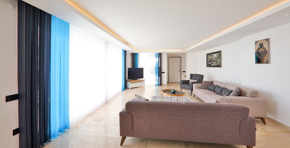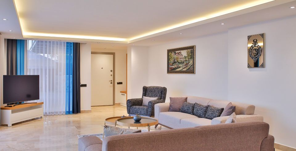 Salon : Salonumuzda oturma grubu, klima, LCD TV, sehpa, uydu alıcı bulunmaktadır. Havuz terasına çıkış yapılabilmektedir.