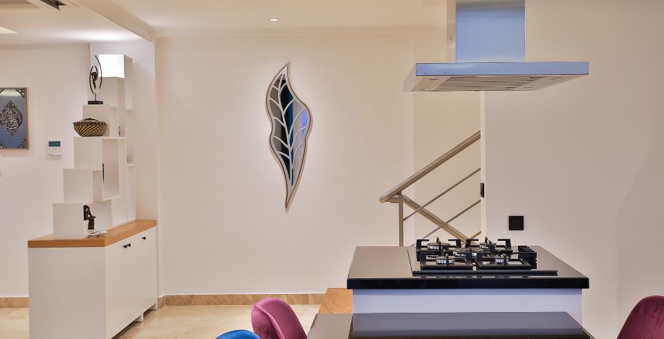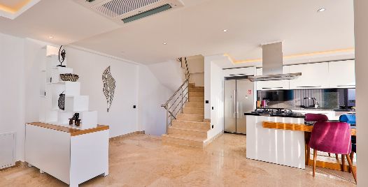 Mutfak : Modern Amerikan mutfakta buzdolabı, bulaşık makinası, fırın, 4'lü ocak, mikrodalga fırın, kettle, tost makinası, 4 kişilik yemek masası, yemek takımları, çatal ve bıçak takımları, tencere ve tava takımları, bardaklar bulunmaktadır
