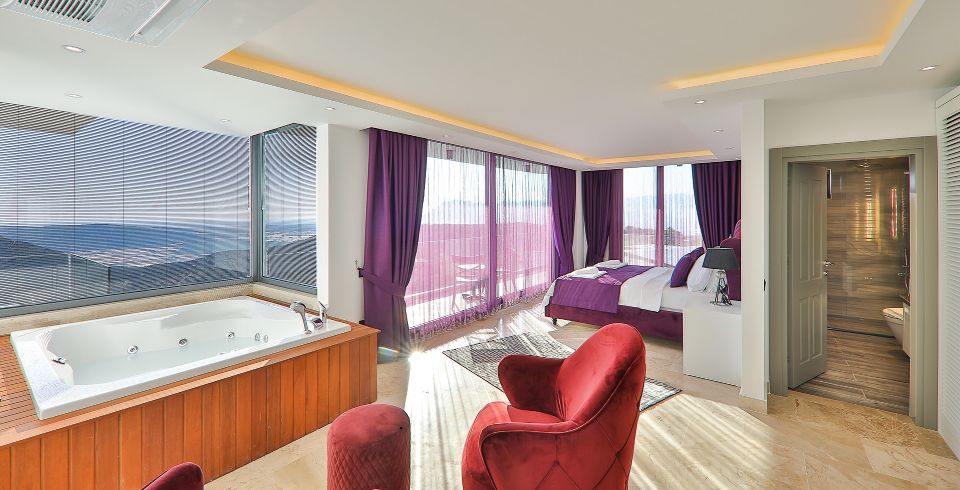 2. Yatak Odası : Çift kişilik yatak odası, klima, jakuzi elbise dolabı, makyaj masası, TV, tuvalet- Banyo, bulunmaktadır.