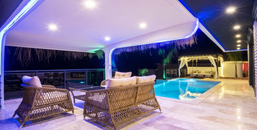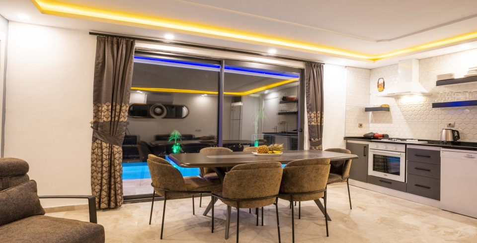 Salon : Oturma grubu, uydu, TV, DVD, klima, yemek masası bulunmaktadır. Ayrıca salondan havuz başına çıkış vardır.