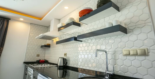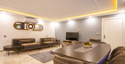 Mutfak : Amerikan mutfakta buz dolabı, bulaşık makinesi, fırın, mikrodalga fırın, 4’lü ocak (ankastre), elektrikli su ısıtıcı, yemek takımları, çatal ve bıçak takımları, tencere ve tava takımları, bardaklar bulunmaktadır.
