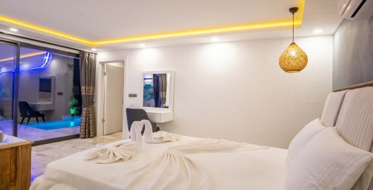 Villa Balli, Antalya Kaş Kalkan bölgesinin Akbel mevkiinde yer almaktadır. Villamızın 2 yatak odası, 4 kişilik kapasitesi ve yatak odasında jakuzisi bulunmaktadır.Villa Balli Deniz manzaralı olup korunaklı yüzme havuzuyla muhafazakar aileler ve balayı çiftleri için ideal bir seçenek olarak karşımıza çıkmaktadır.