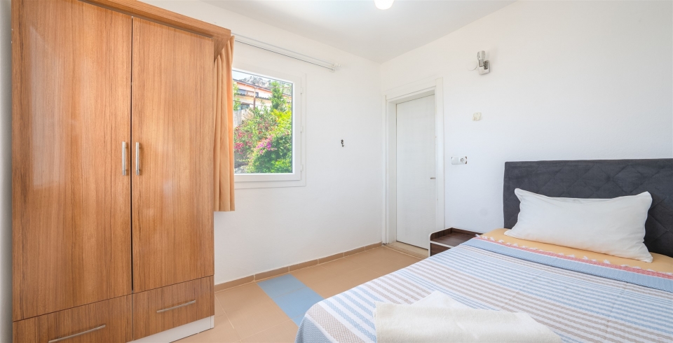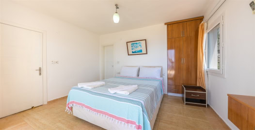 1. Yatak Odası : İki kişilik yatakla beraber sizleri sıcak yaz günlerinde serin tutması için bakımları yapılmış klima bulunmaktadır. Elbise dolabı, makyaj masası, komodin, banyo ve lavabodan oluşmaktadır.