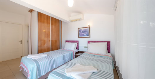 3. Yatak Odası : İki tane tek kişilik yatakla beraber klima, elbise dolabı, makyaj masası, komodin, banyo ve lavabodan oluşmaktadır.