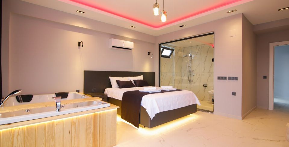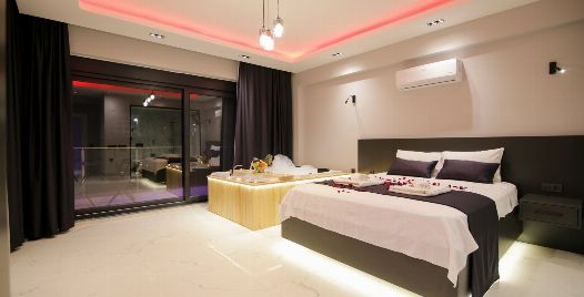 1. Yatak Odası: Çift kişilik yatak, klima, jakuzi, komodin, elbise dolabı, makyaj masası, banyo ve tuvalet bulunmaktadır.