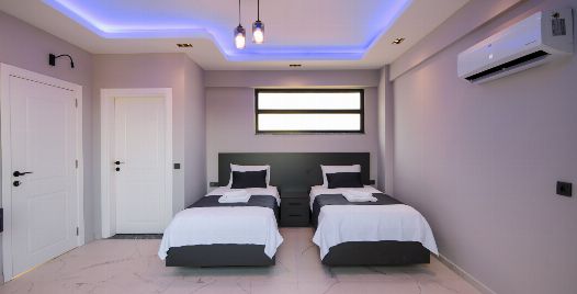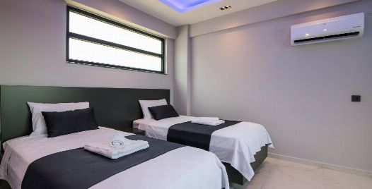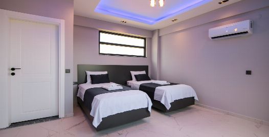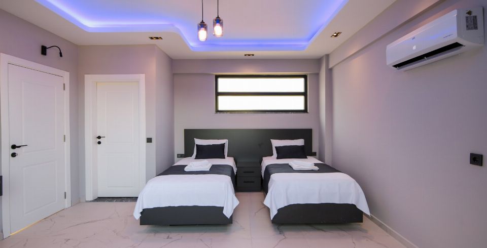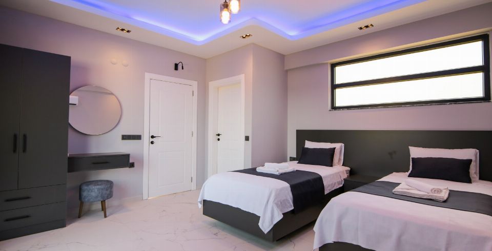 2. Yatak Odası: 2 adet tek kişilik yatak klima, komodin, elbise dolabı, makyaj masası, banyo ve tuvalet bulunmaktadır.