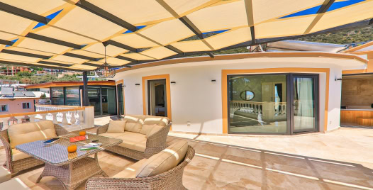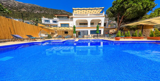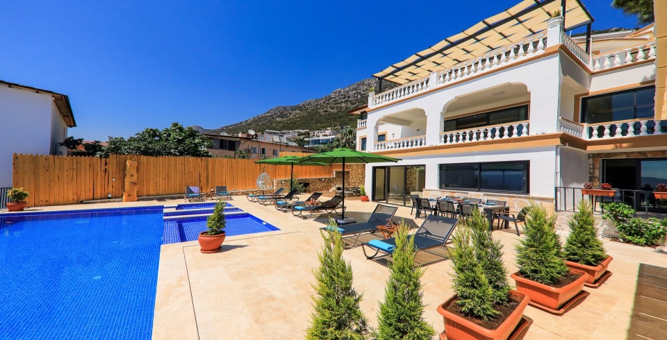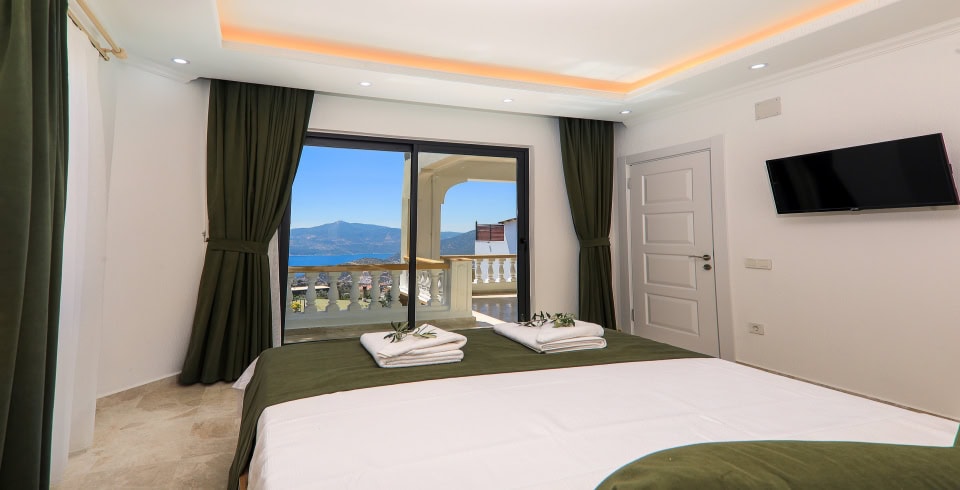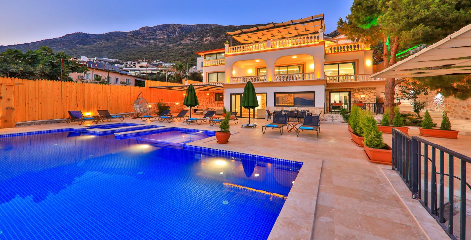 Villa Baykan, Kalkan Kördere mevkiinde yer alıyor ve 10 kişi kapasitesi ile ideal bir konaklama seçeneği sunuyor. 5 yatak odası, 5 banyo ile geniş aileler ya da arkadaş grupları için ferah ve rahat bir ortam sağlanmakta. Villada açık havuz ve kapalı havuz mevcut; ayrıca jakuzi, sauna ve Türk hamamı gibi lüks donanımlar konforu artırıyor. Modern Amerikan mutfak ekipmanları ile döşeli mutfakta buzdolabı, fırın, mikrodalga gibi tüm temel gereçler yer alıyor. Salon, panoramik deniz manzaralı büyük cam pencereleriyle günün her saati hoş vakit geçirmek için ideal.