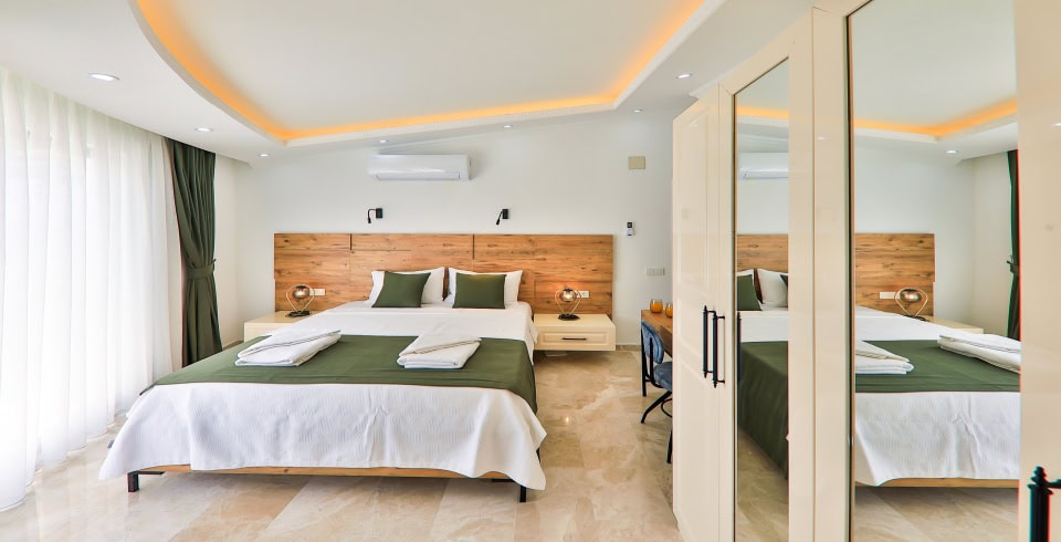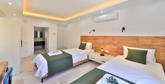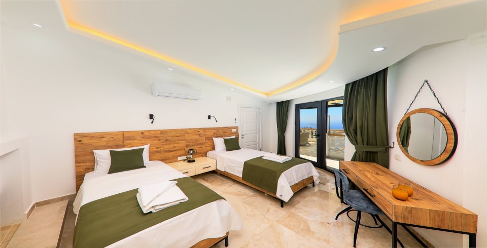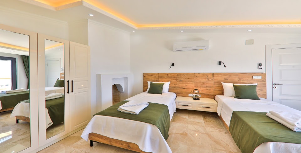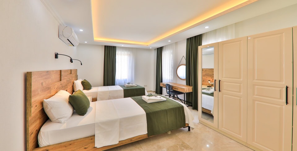 5.Yatak Odası: 2 adet tek kişilik yatak, elbise dolabı, komodin, klima, makyaj masası, banyo ve lavabo bulunmaktadır.