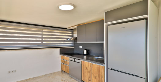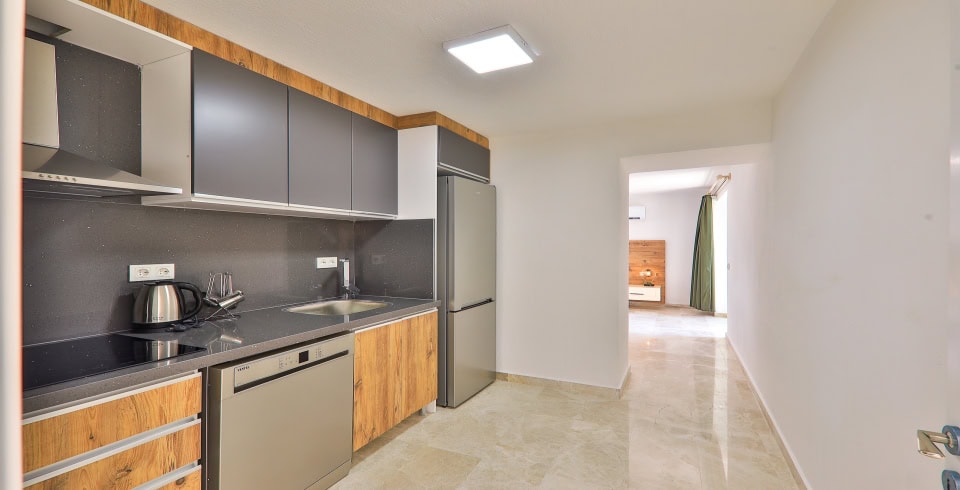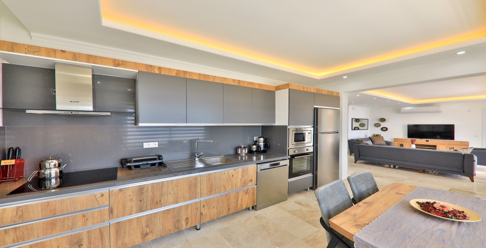 Mutfak: Açık planlı mutfak, 10 kişiye yetecek kadar mutfak malzemeleri, buzdolabı, fırın, ocak, mikrodalga fırın, bulaşık makinesi, çamaşır makinesi, tost makinesi, kettle ve çaydanlık bulunmaktadır..