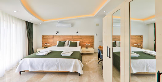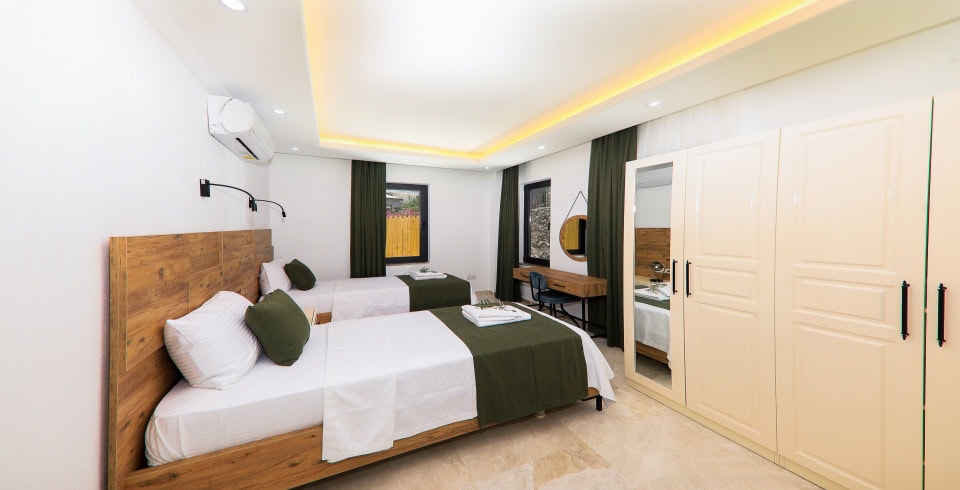 4.Yatak Odası: 2 adet tek kişilik yatak, elbise dolabı, komodin, klima, makyaj masası, TV, banyo ve lavabo bulunmaktadır.