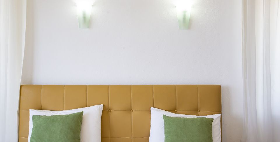 1. Yatak Odası : Çift kişilik yatak, klima, elbise dolabı, komodin, makyaj masası, banyo ve lavabo bulunmaktadır. Deniz manzaralı balkon bulunmaktadır.