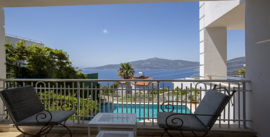 3. Yatak Odası : 2 Adet tek kişilik yatak, klima, elbise dolabı komodin, makyaj masası, ortak kullanım lavabo ve banyo bulunmaktadır. Deniz manzaralı teras bulunmaktadır.