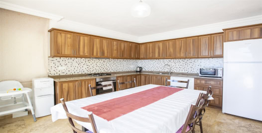 Mutfak : Deniz manzaralı Amerikan mutfak Detayları; Buzdolabı, çamaşır makinası, bulaşık makinası, yemek masası, su sebili, su ısıtıcısı, ekmek kızartma makinası, fırın,4'lü ankastre ocak, mikro dalga ve mutfak araç gereçleri bulunmaktadır.