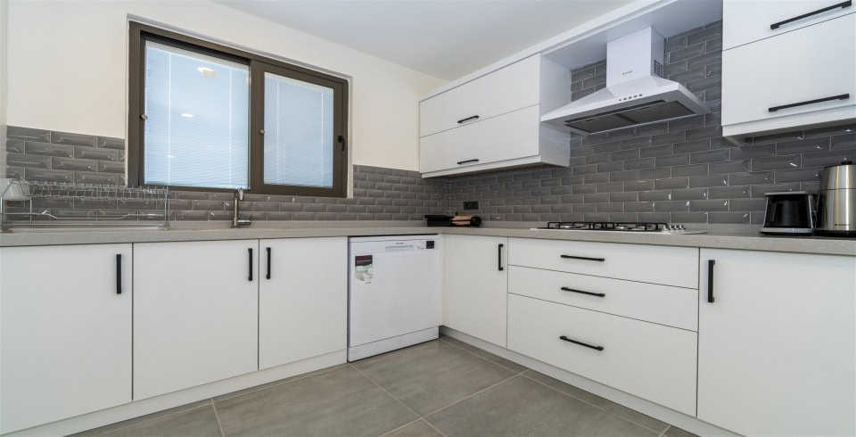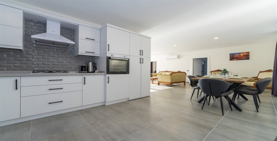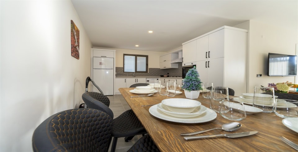 Mutfak : Modern amerikan mutfak içerisinde buzdolabı, bulaşık makinesi, çamaşır makinesi, yemek takımı, çatal-bıçak seti, tencere, tava, bardak ve diğer mutfak ekipmanları yer almaktadır.