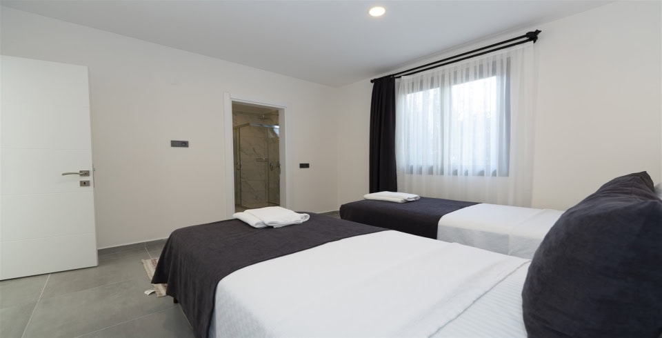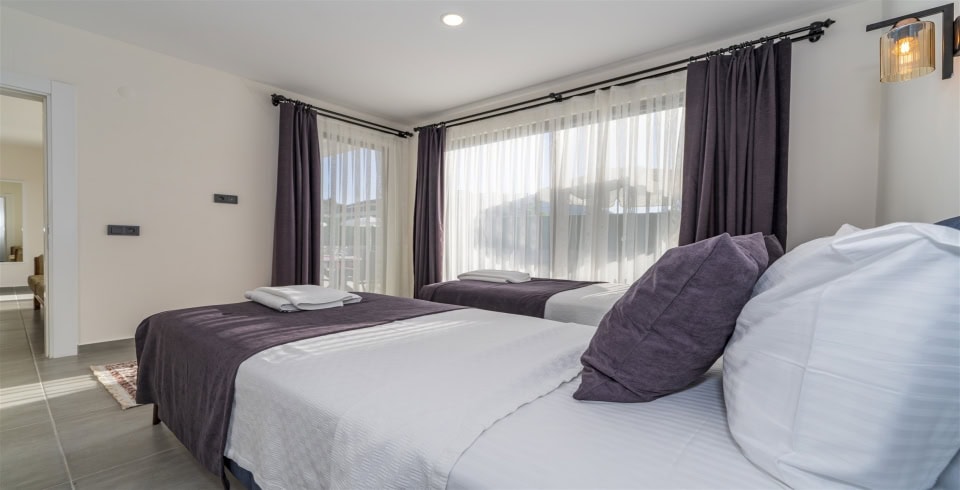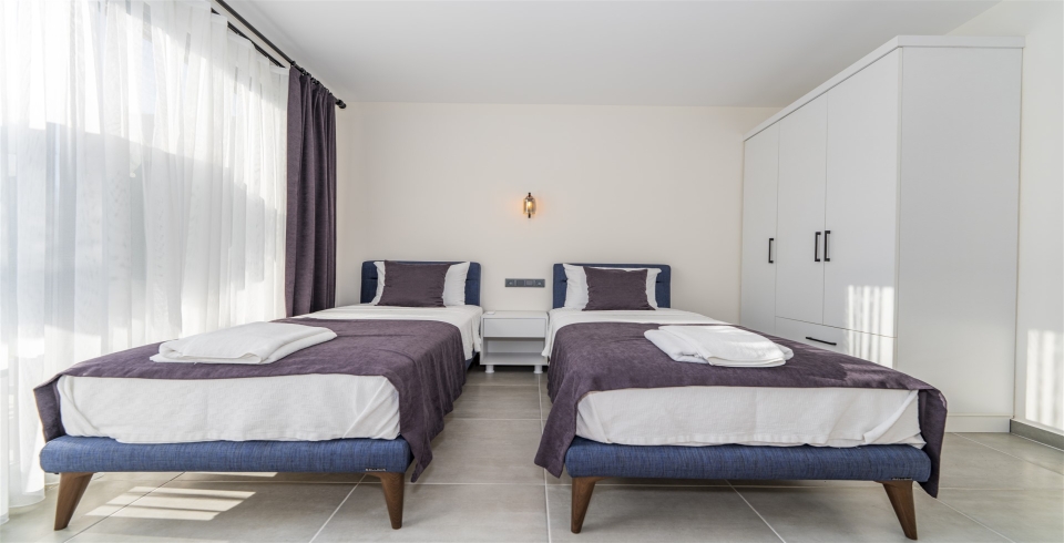 2. Yatak Odası : 2 adet tek kişilik yatak, elbise dolabı, makyaj masası, komodin,banyo ve lavabo bulunmaktadır.