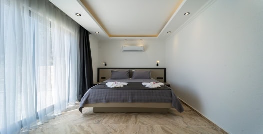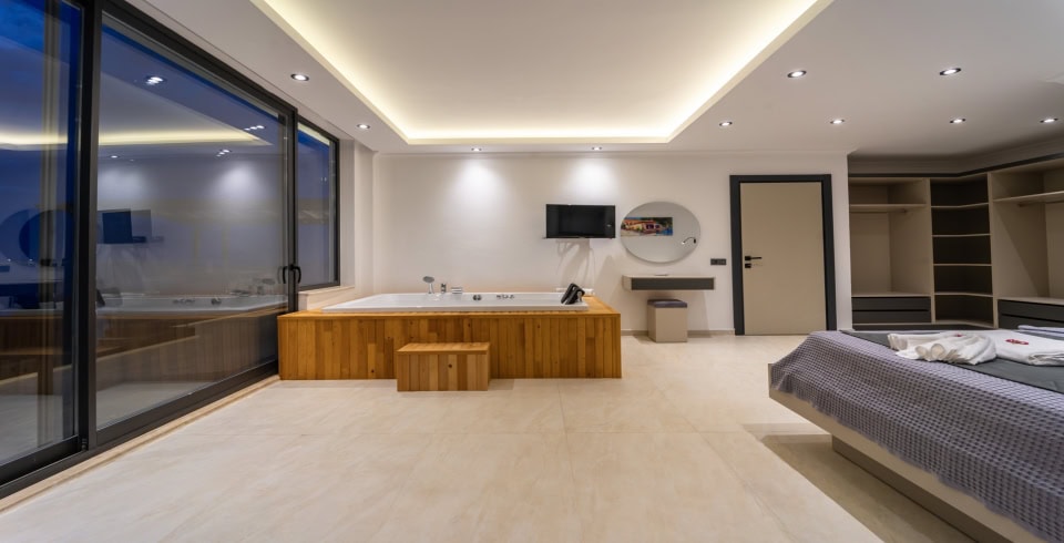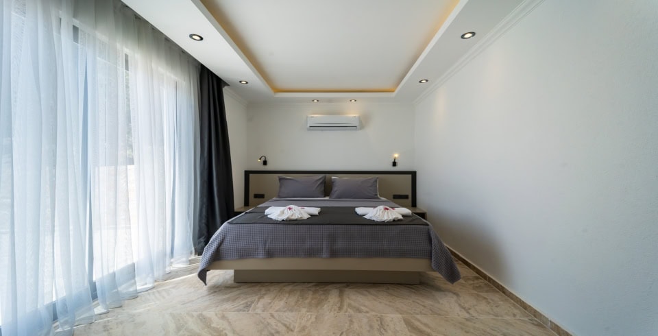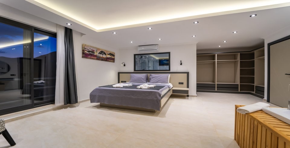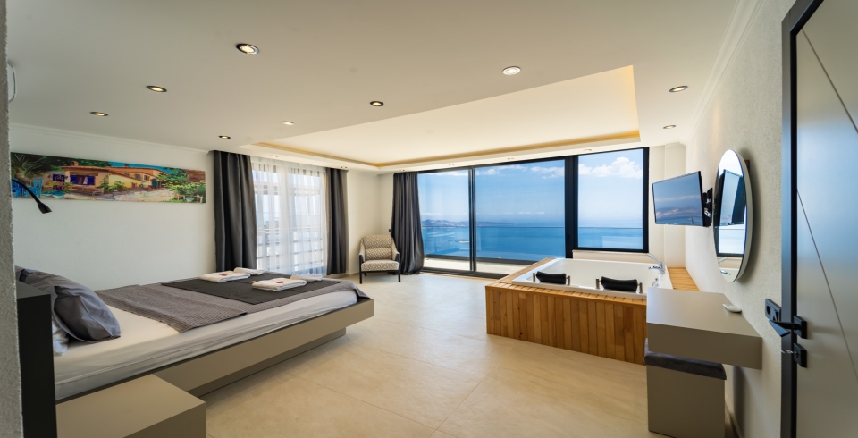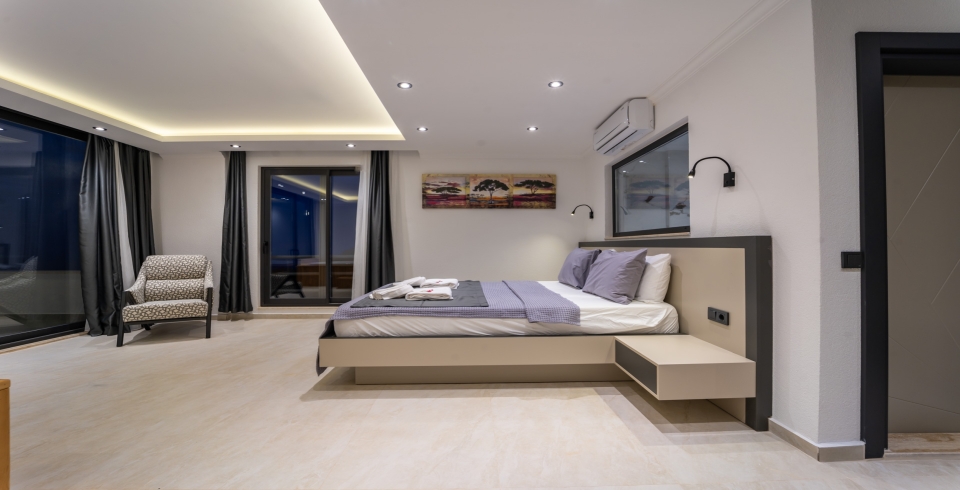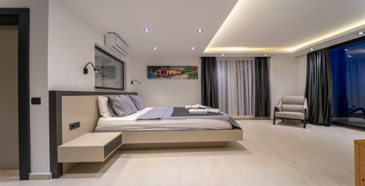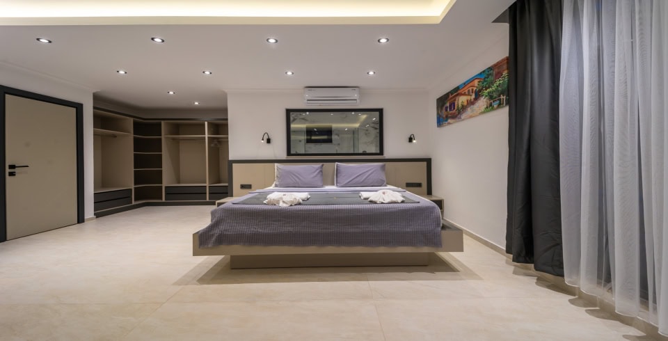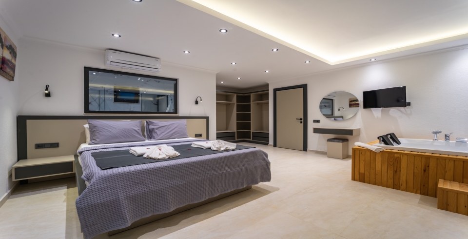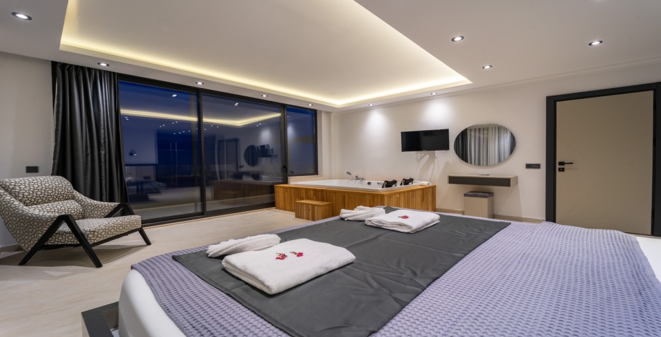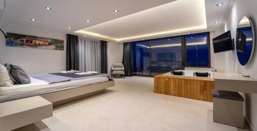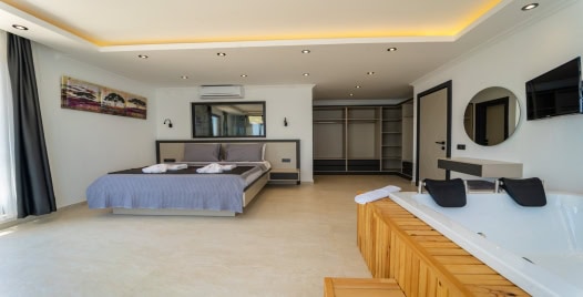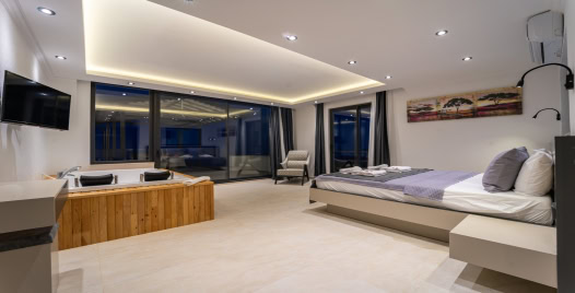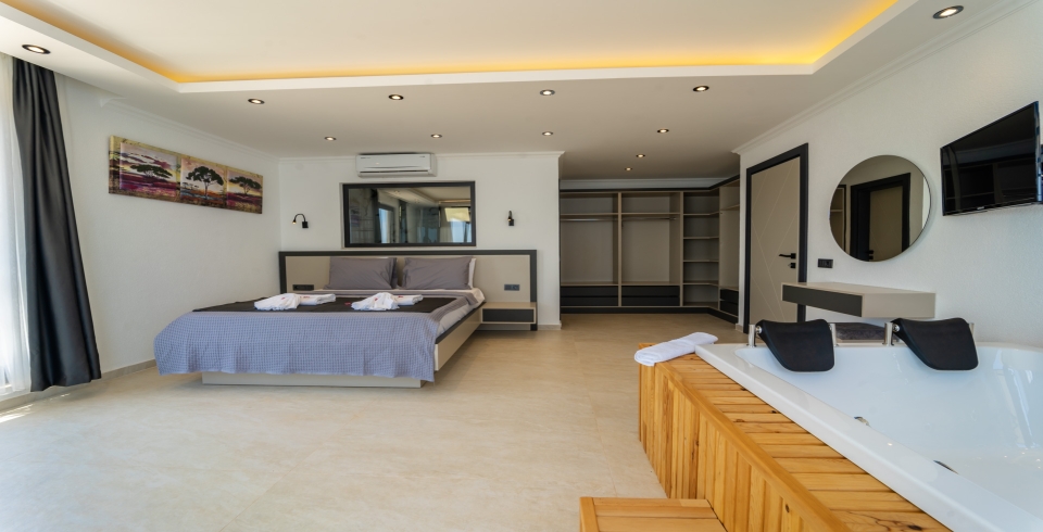 1. Yatak Odası: 1 adet çift kişilik yatak,Jakuzi, elbise dolabı, makyaj masası,TV, klima ve banyo-tuvalet yer almaktadır.