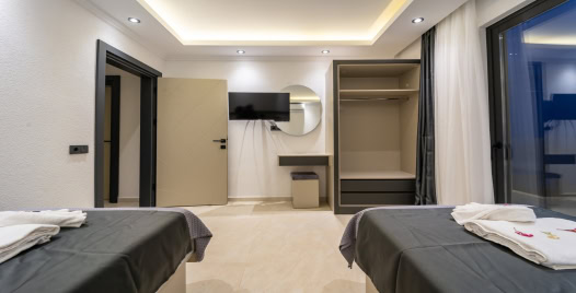 4. Yatak Odası: 2 adet tek kişilik yatak, elbise dolabı,TV, makyaj masası yer almaktadır.