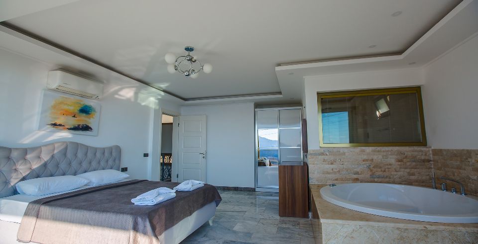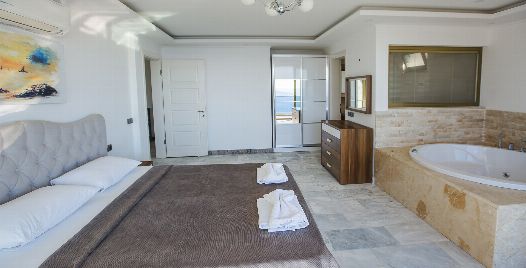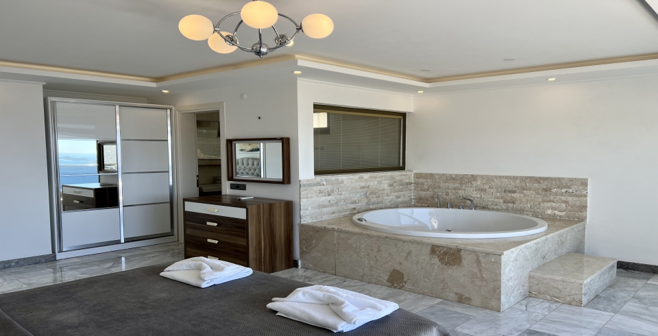 1. Yatak Odası : Çift kişilik yatak, klima, komodin, makyaj masası, jakuzi, banyo ve tuvalet bulunmaktadır.