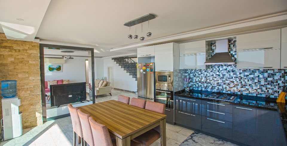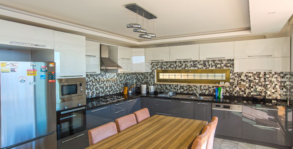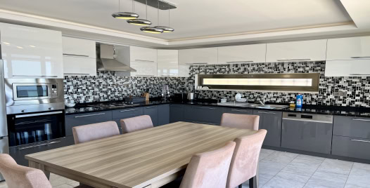 Mutfak : Villamızın mutfağında Amerikan mutfak 6 kişilik yemek takımı, buzdolabı, mikrodalga fırın, 4 lü ocak, ekmek kızartma makinası, tost makinası, kettle , çatal bıçak takımı, tencere tava takımı, bulaşık makinası bulunmaktadır.
