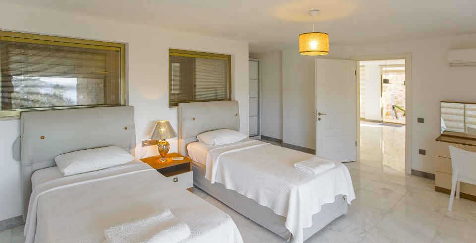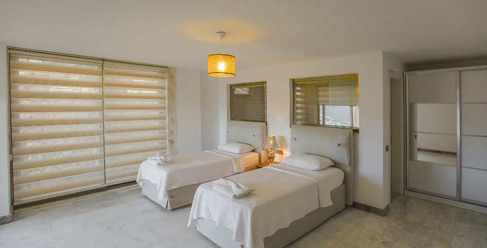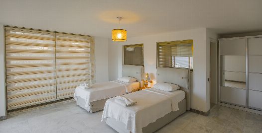 2. Yatak Odası : 2 adet tek kişilik yatak, komodin, klima, makyaj masası, elbise dolabı, banyo ve tuvalet bulunmaktadır.