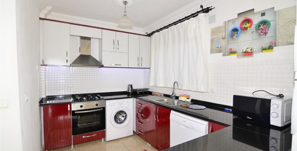 Mutfak : Villamızın geniş Amerikan mutfağı ile sizlere kendi evinizin mutfağı gibi hissettirecek. Ayrıca mutfakta klima, bulaşık makinası, buzdolabı, çamaşır makinası, mikrodalga fırın, tost makinası, ekmek kızartma, su ısıtıcısı, fırın, 4'lü ocak seti ve 4 kişilik geniş yemek masası ile tava tencere vb. mutfak araç gereçlerini kullanma fırsatını sizlere sunuyoruz.