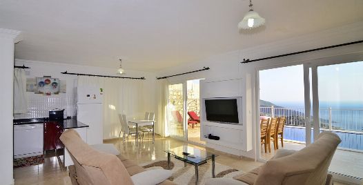 Salon : Villa Bembeyazın salonunda sizi şık bir oturma grubu ile klima, televizyon, internet, uydu, koltuk, sehpa ile ferah bir salon bekliyor olacaktır. Havuz terasına çıkış yapılmaktadır.