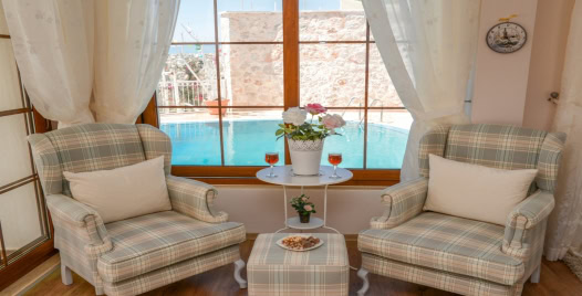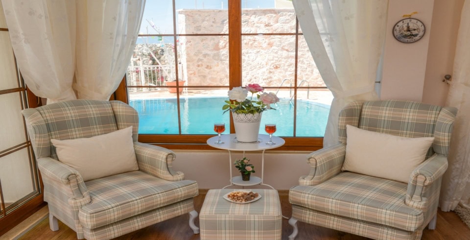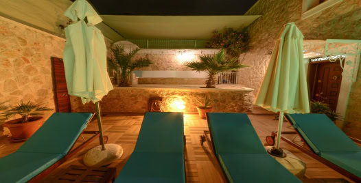 Villanın jakuzisi, manzaraya karşı dinlenip günün yorgunluğunu atabileceğiniz özel bir alan sunarken, tam korunaklı yüzme havuzu da mahremiyete önem veren misafirler için rahat bir tatil ortamı oluşturur.