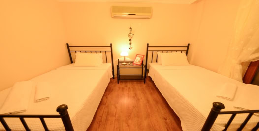 2.Yatak Odası: Eşsiz deniz manzaralı genç yatak odası klimalı olup içerisinde 2 adet tek kişilik yatak, komodin, elbise dolabı, banyo ve tuvalet bulunmaktadır.