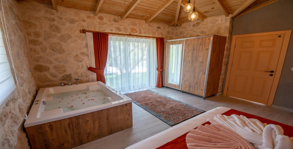 Muhafazakar konsepti, korunaklı yapısı ve romantik atmosferiyle çiftlere tam anlamıyla mahremiyet sunar. Villada yer alan jakuzi, tatilinize konfor ve keyif katarken, sessiz çevresi dinlenmeniz için mükemmel bir ortam yaratır.
