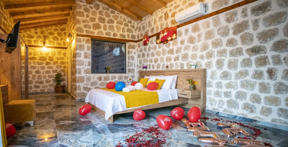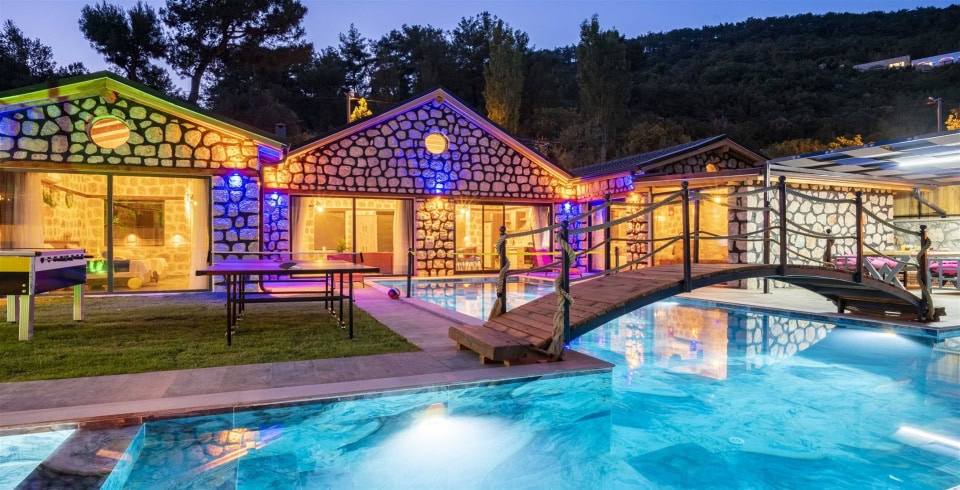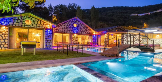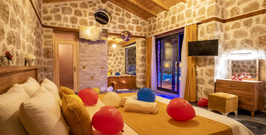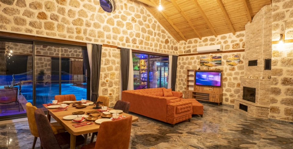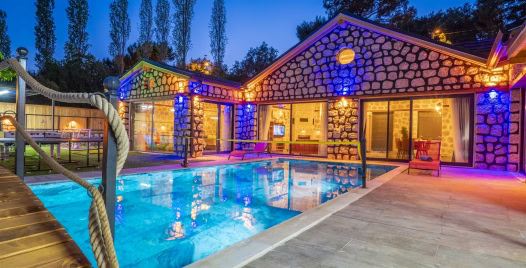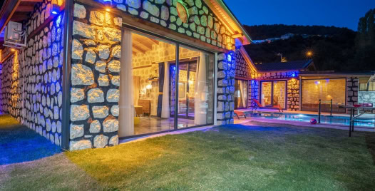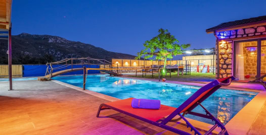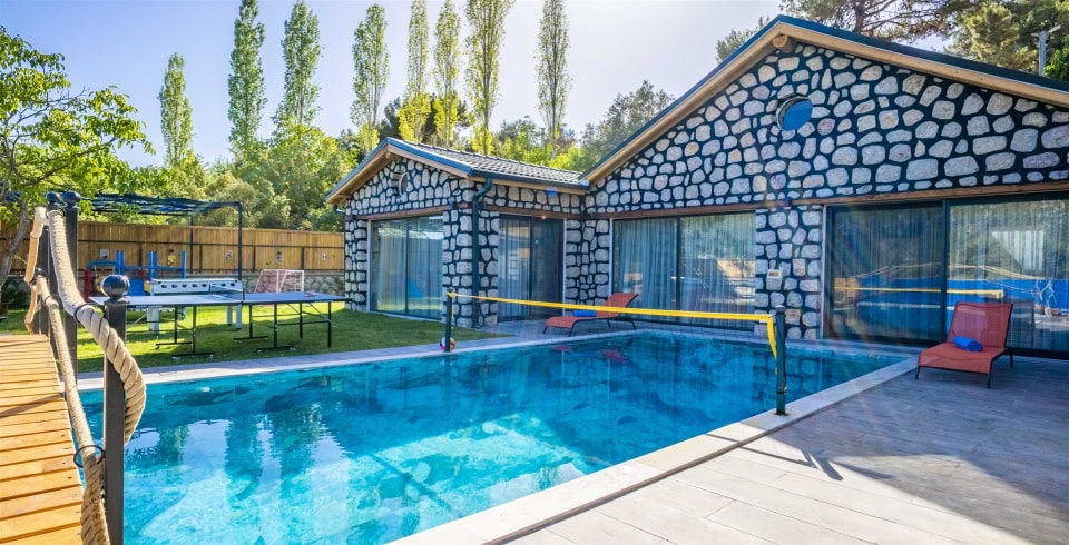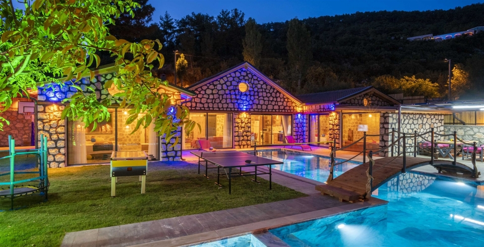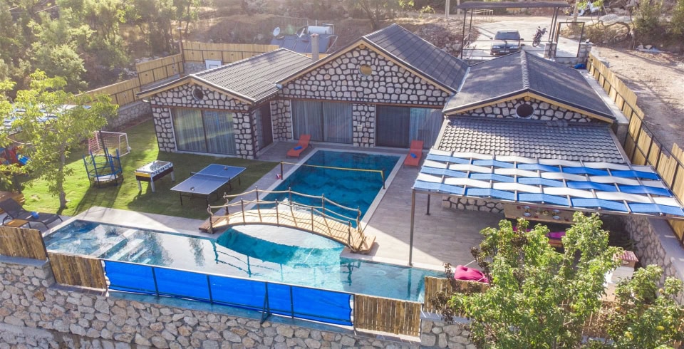 Villa Big Boss, Kalkan İslamlar’da bulunan taş mimarili ile özenle dekore edilmiş 2 yatak odalı, yeşillikler içinde özel muhafazakar havuzlu, masa tenisi, şömine, langırt, çocuklar için düşünülmüş oyun parkı, salıncak, mini futbol kalesi, küçük basket potası, oturma köşkü, tranbolin, masa tenisi, langırt, minyatür kale, havuzda voleybol filesi, bbq, tavla, satranç, domino, sauna ve oda içerisinde jakuzi bulunan villamız bölgenin en modern villalarından olup muhafazakar balayı çiftine fiyata uygun, lüks bir Kiralık Balayı Villasıdır. Villa Big Boss geniş bir bahçe içerisinde yapılmış olup etrafında herhangi bir yerleşim olmadığı için tam korunaklı bir havuza sahiptir.