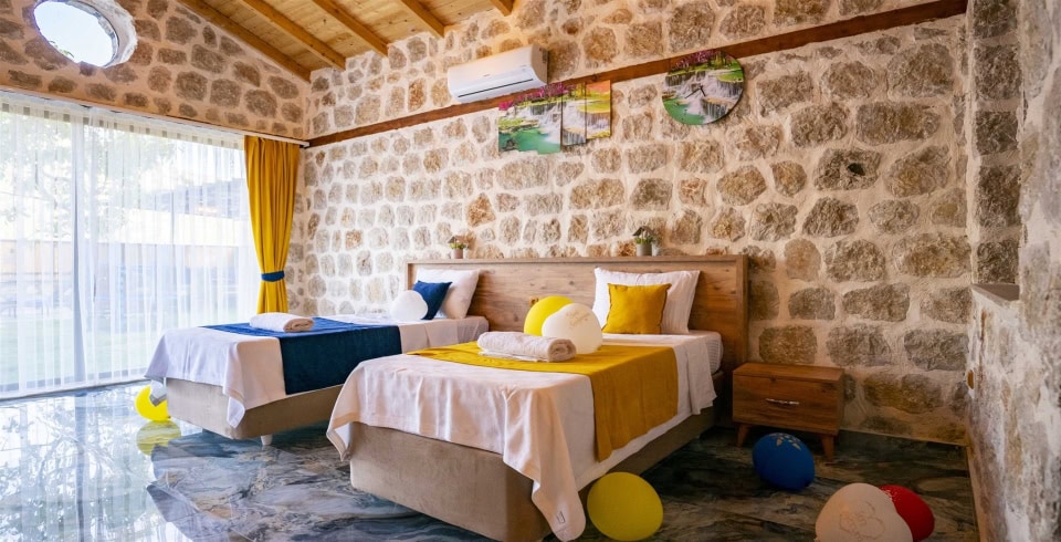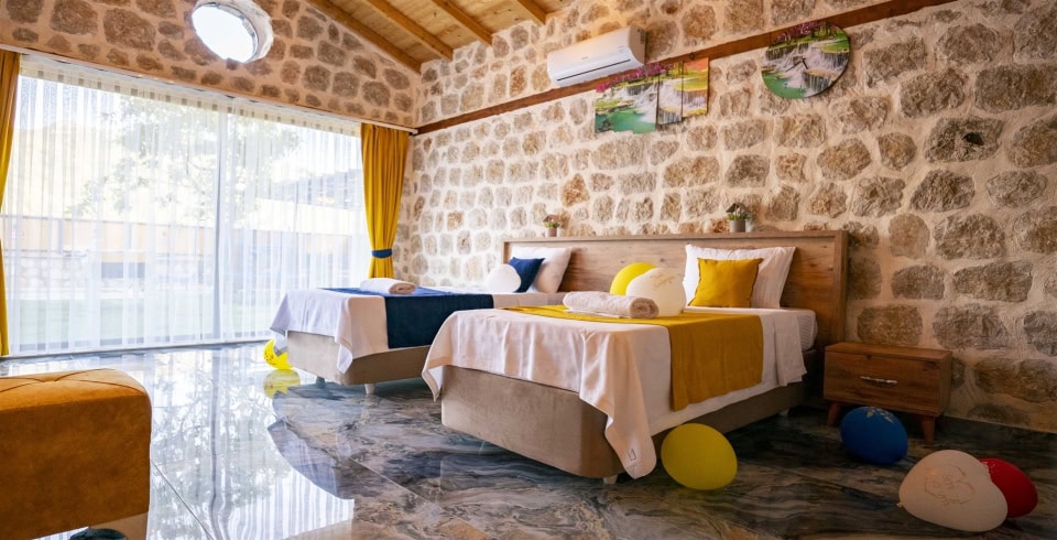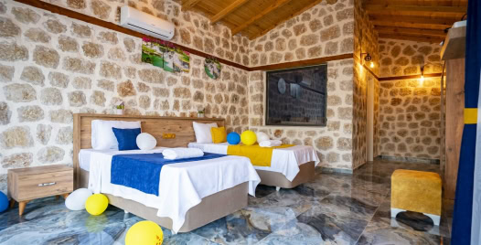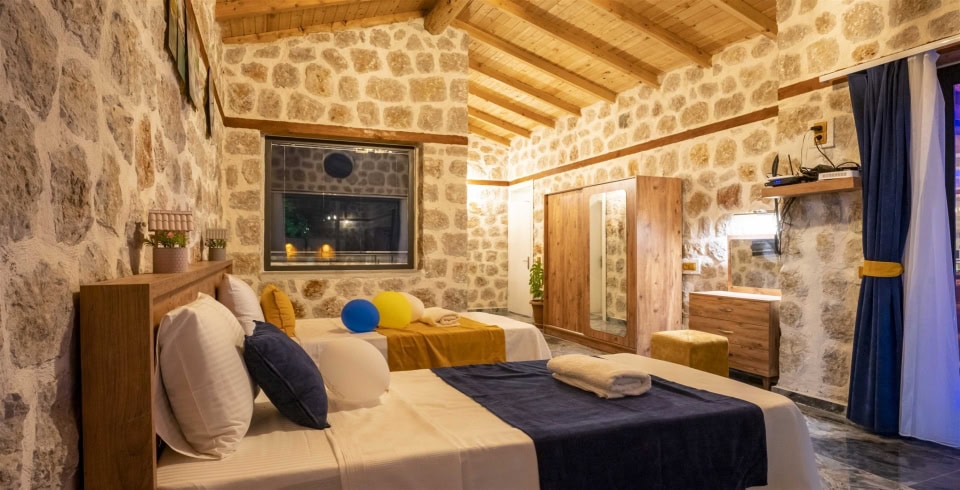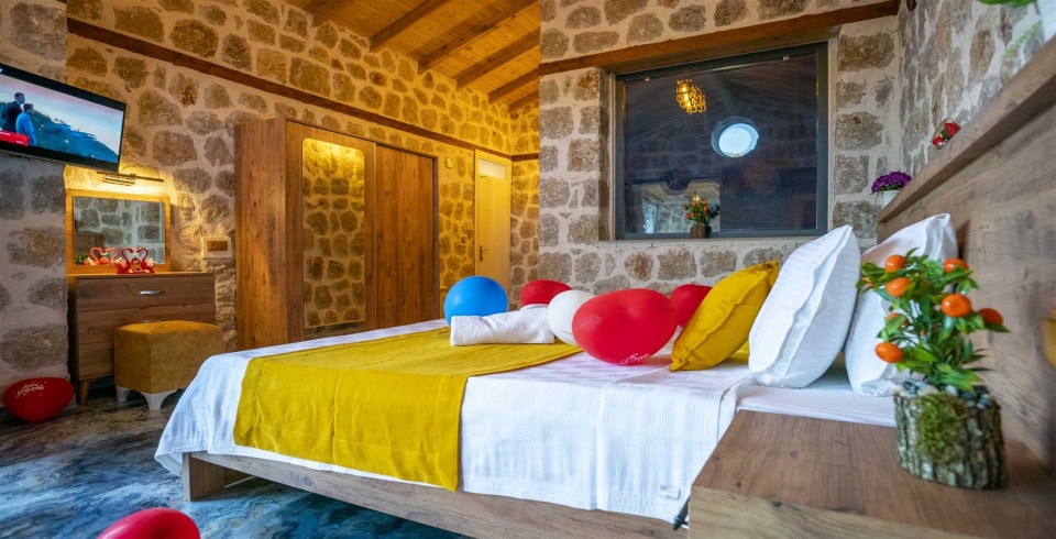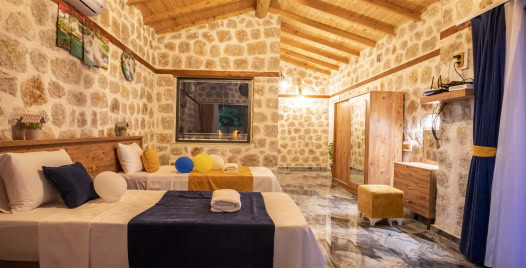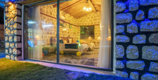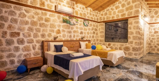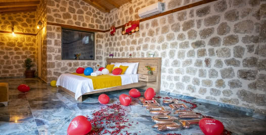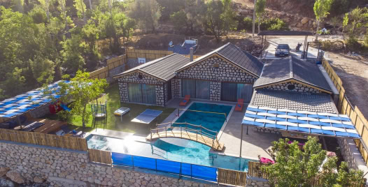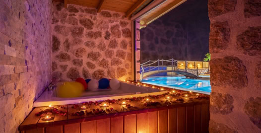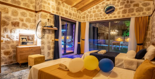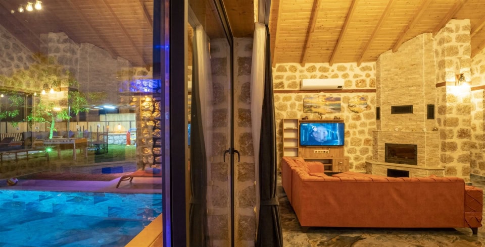 Villa Big Boss, Kalkan İslamlar’da bulunan taş mimarili ile özenle dekore edilmiş 2 yatak odalı, yeşillikler içinde özel muhafazakar havuzlu, masa tenisi, şömine, langırt, çocuklar için düşünülmüş oyun parkı, salıncak, mini futbol kalesi, küçük basket potası, oturma köşkü, tranbolin, masa tenisi, langırt, minyatür kale, havuzda voleybol filesi, bbq, tavla, satranç, domino, sauna ve oda içerisinde jakuzi bulunan villamız bölgenin en modern villalarından olup muhafazakar balayı çiftine fiyata uygun, lüks bir Kiralık Balayı Villasıdır. Villa Big Boss geniş bir bahçe içerisinde yapılmış olup etrafında herhangi bir yerleşim olmadığı için tam korunaklı bir havuza sahiptir.