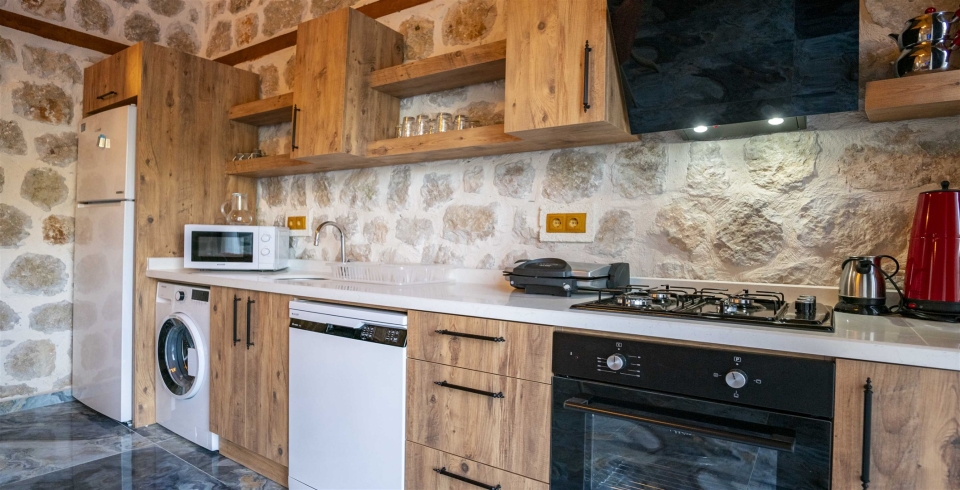 Mutfak : Mutfak bölümümüzde, buzdolabı, bulaşık makinesi, çamaşır makinesi, fırın, çatal & bıçak takımı, yemek takımı, kettle vb. mutfak ekipmanları bulunmaktadır.