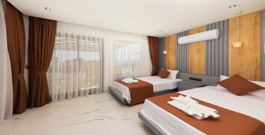 3. Yatak Odası: 2 adet tek kişilik yatak, Klima, komodin, elbise dolabı, makyaj masası, banyo ve tuvalet saç kurutma makinası bulunmaktadır.
