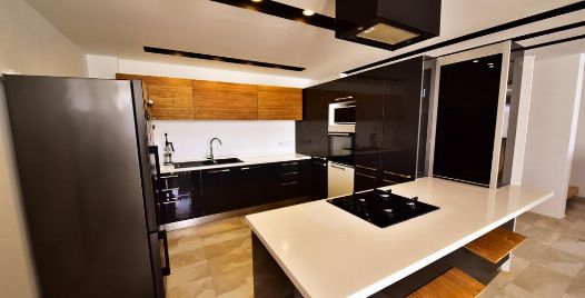 Mutfak : Modern Amerikan mutfakta buzdolabı, bulaşık makinası, fırın, 4'lü ocak, mikrodalga fırın, kettle, tost makinası, 4 kişilik yemek masası, yemek takımları, çatal ve bıçak takımları, tencere ve tava takımları, bardaklar bulunmaktadır