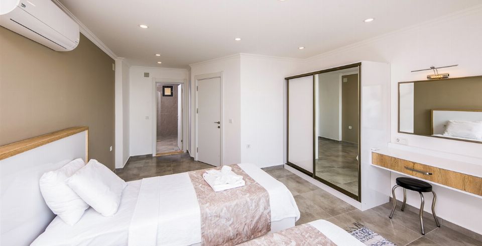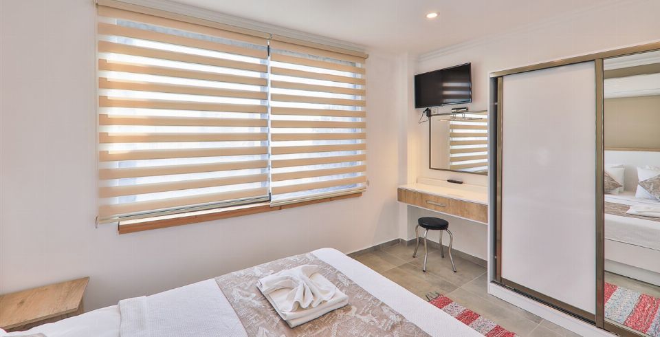 3. Yatak Odası : Süit oda, iki tane çift kişilik yatak la beraber elbise dolabı, makyaj masası, komodin, klima bulunmaktadır. Banyo ve lavabo ortak kullanımdır.