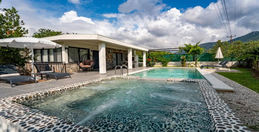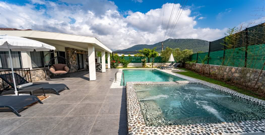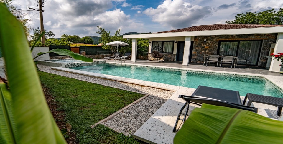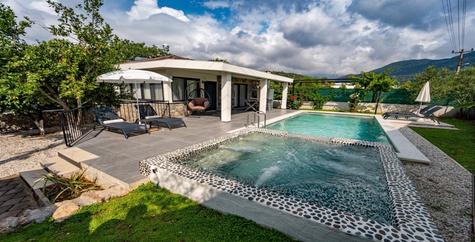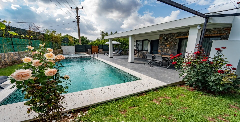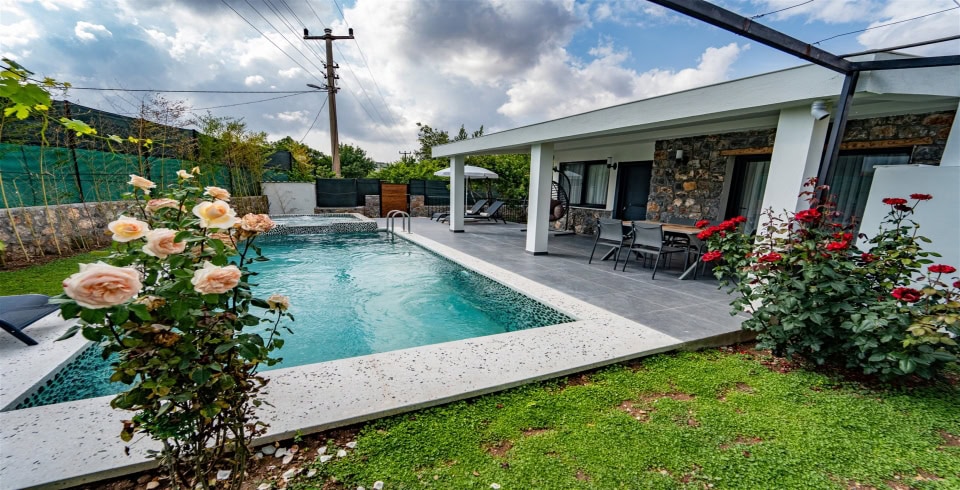 Villamızın havuzu tuzlu sistemdir. Villa sahibine ait 4 dönüm arazi içerisinde 3 adet villa mevcut olup, bahçe içerisinde meyve ve sebzeler bulunmaktadır. Ayrıca küçük misafirlerimiz için çocuk oyun parkı yer almaktadır..