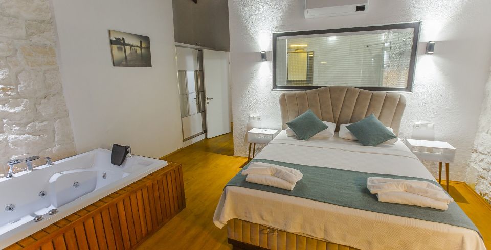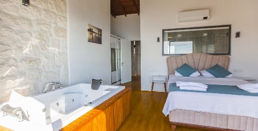 1. Yatak Odası : Çift kişilik yatak, klima, komodin, makyaj masası, jakuzi, banyo ve tuvalet bulunmaktadır.