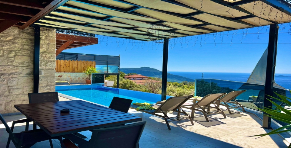 Villa Blue Vista Kördere mevkiinde eşsiz deniz ve doğa manzarasına sahip olup lüks ve otantik detaylarıyla kaliteden ödün verilmeden 2020 yılında tamamlanmış ve siz değerli misafirlerimizin beğenisine sunulmuştur. Her kösesinden deniz ve doğa manzarasına sahip olan villamız özenle dekore ve modern dizayn edilmiştir.