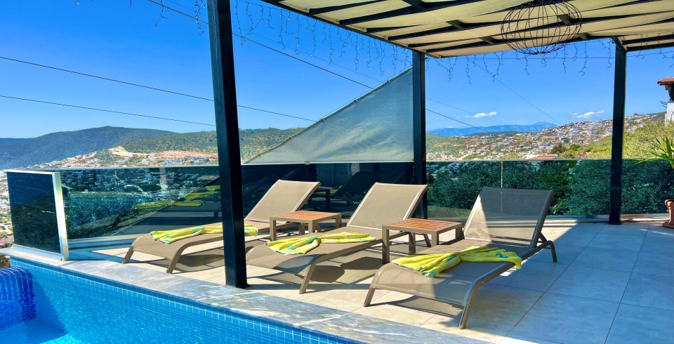 Havuz ve Bahçe : Villamızın özel yüzme havuzun muhafazakar olup dışarıdan görünmemektedir. şezlong, şemsiye, yemek masası, barbekü bulunmaktadır.