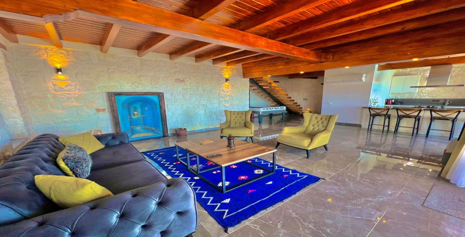 Salon : Villamızın salonunda oturma grubu, TV, internet, langırt, yemek masası, sehpa bulunmaktadır.